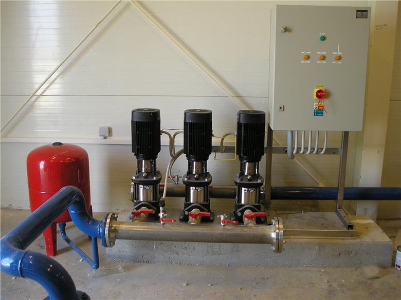 Riadiaca jednotka SIEMENS so snímačom tlaku. Systém automaticky spína 2 až 4 čerpadlá podľa aktuálneho odberu. Riadiaca jednotka zabezpečuje, aby sa čerpadlá striedali (pravidelne po 1 odpracovanej hodine), čím sa rovnomerne opotrebovávajú a predlžuje sa ich životnosť.